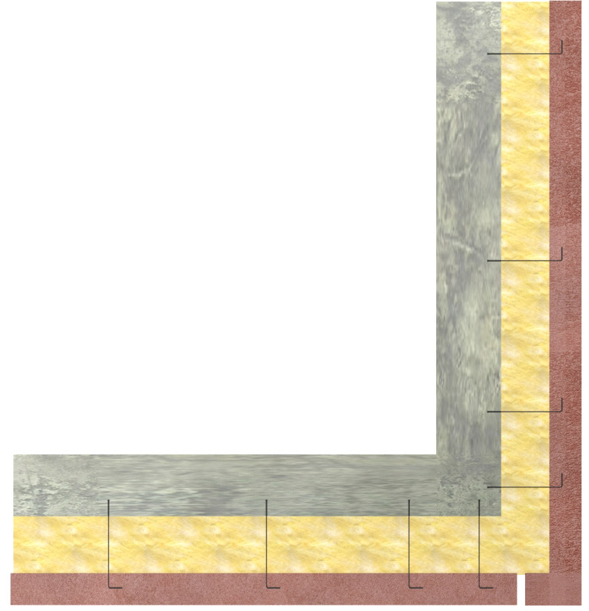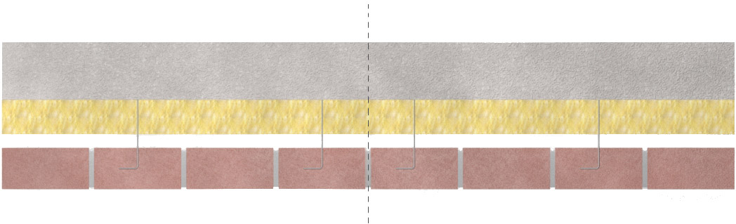 Kramlor bör förses med isoleringsbricka som dels håller isoleringen på plats och samtidigt hindrar vatten från regngenomslag att tränga in i isoleringen via kramlorna. Vidare ska kramlor ej monteras med fall mot stommen. Se figur 3.2.3. Kramling påbörjas i andra skiftet efter anläggningsskiftet. I första skiftet bör fogarmering av bistål läggas in och under anläggningsskiftet bör det läggas ett glidskikt för att dels förhindra risken för uppsprickning i skalmuren, dels ge möjlighet att förlänga avståndet till närmaste dilatationsfog. Se figur 3.2.3.